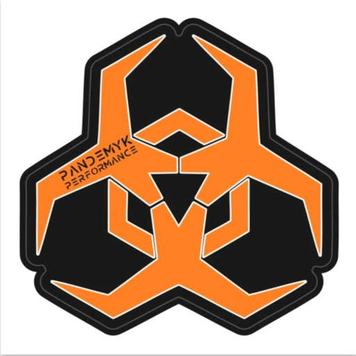 Brand your contagious performance with our Pandemyk Biohazard decal. Easy peel and stick with bright orange color.
